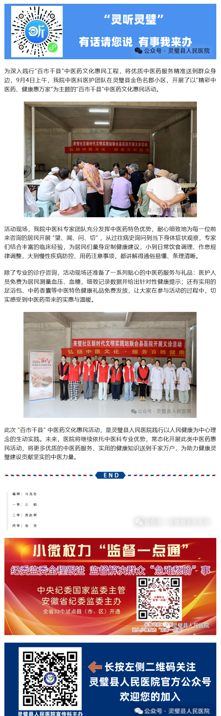 精彩中医药 健康惠万家——灵璧县人民医院开展“百市千县”中医药文化惠民活动