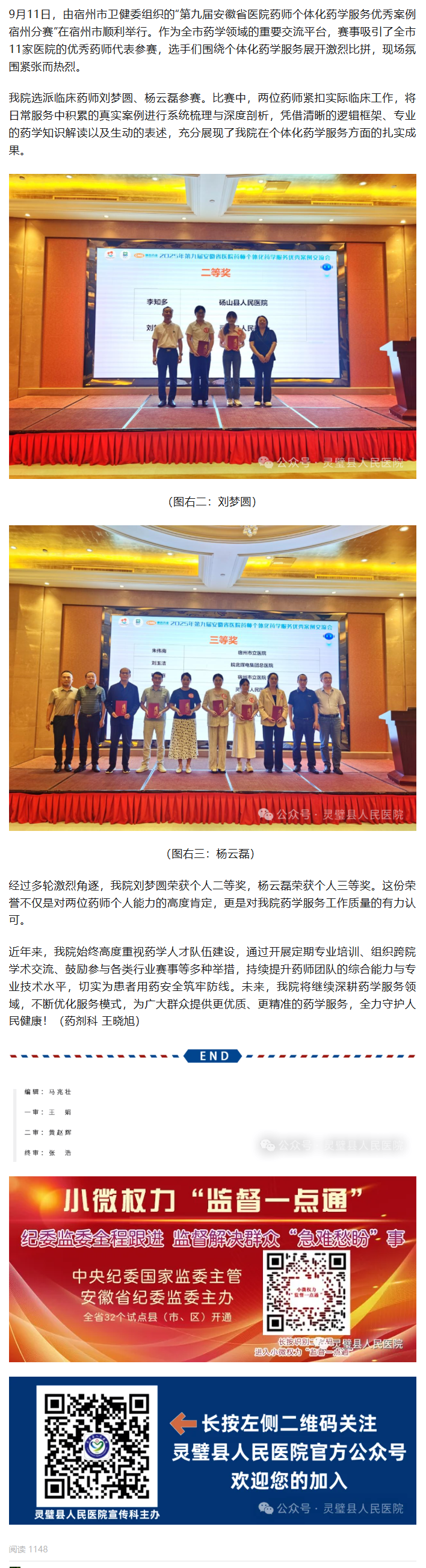 喜报!我院刘梦圆、杨云磊在“第九届安徽省医院药师个体化药学服务优秀案例宿州分赛”分别荣获二、三等奖