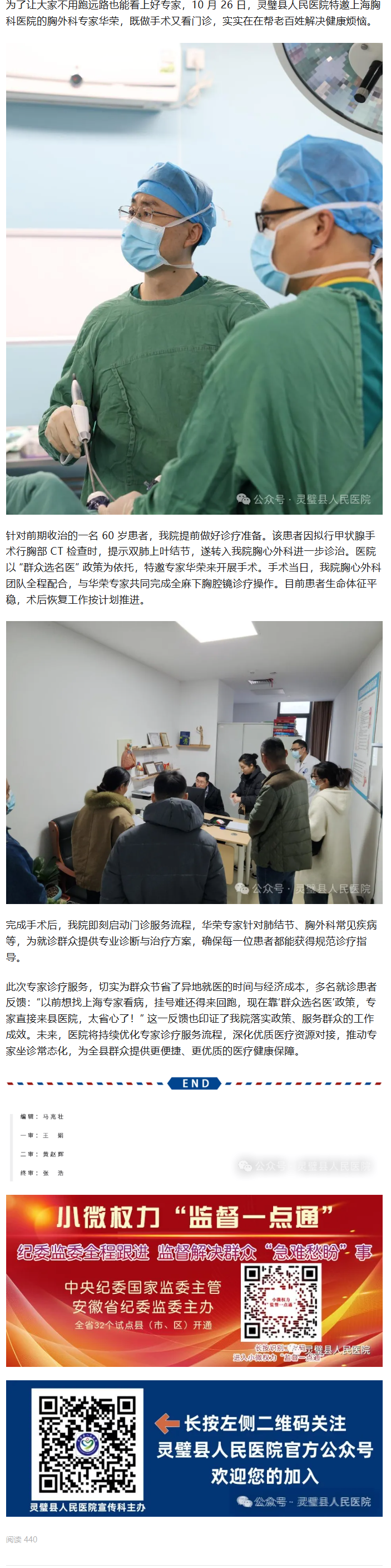 上海专家来灵璧啦!60 岁阿姨在家门口就解决了肺结节问题