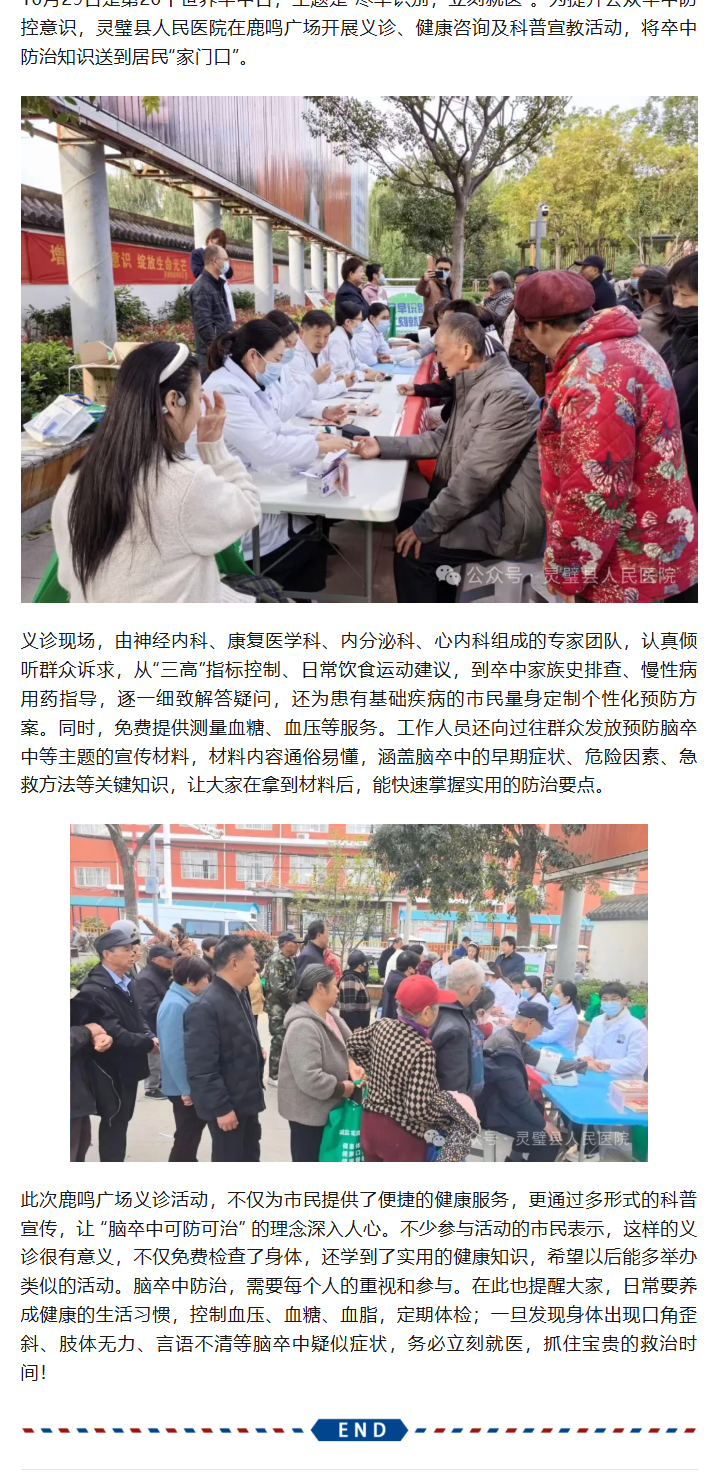 “尽早识别,立刻就医”——我院开展第20个“世界卒中日“义诊宣教活动