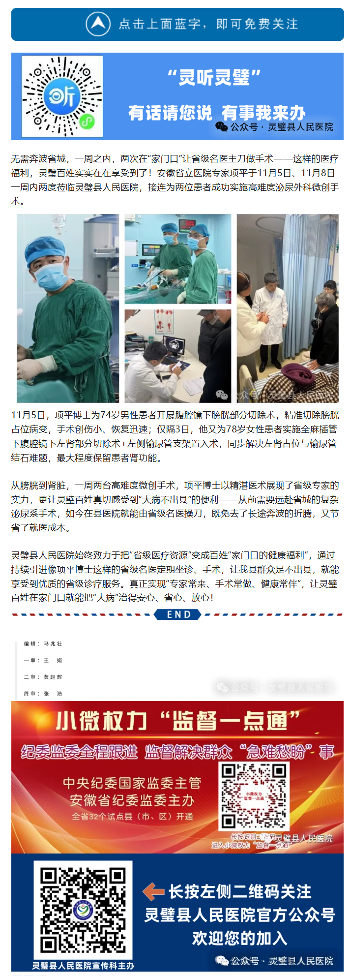 省级专家 “一周双至”!安徽省立医院泌尿外科专家项平一周两次来我院坐诊、手术