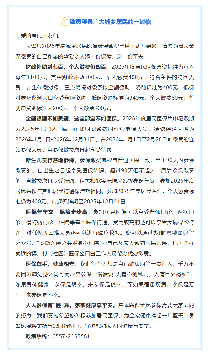 致灵璧县广大城乡居民的一封信