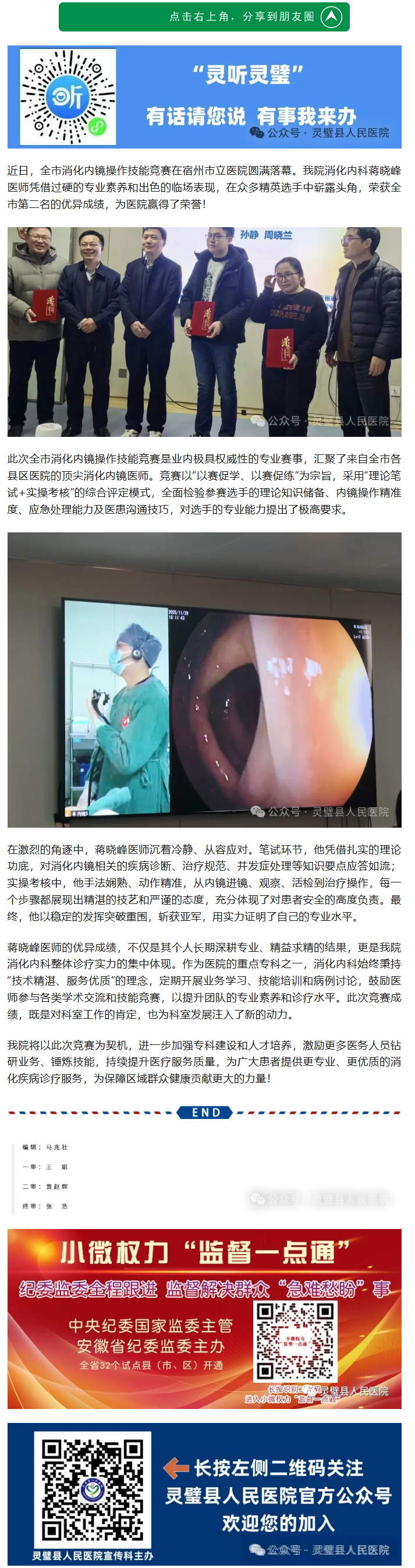 硬核实力!我院蒋晓峰医师在全市消化内镜操作技能竞赛中斩获佳绩