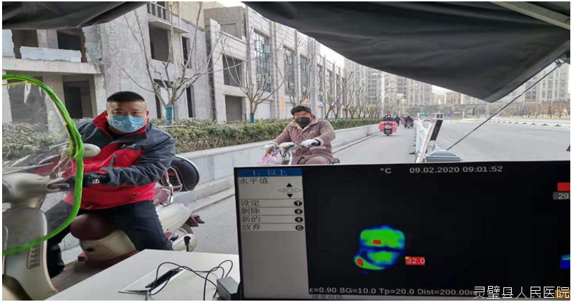 严防把守,从“门”开始,医院入口处设置体温测量点,医务人员拿着体温枪逐个检测着进入人员的体温,帐篷内还放置一台热像仪,双管齐下对每个人员进行体温筛查。