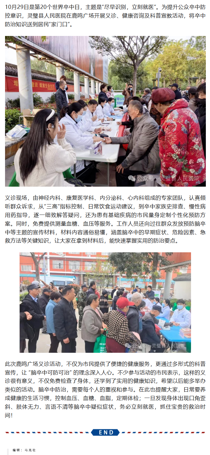 “尽早识别,立刻就医”——我院开展第20个“世界卒中日“义诊宣教活动