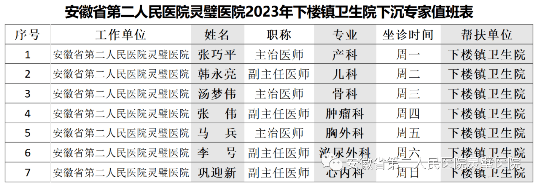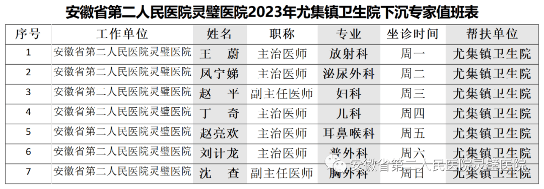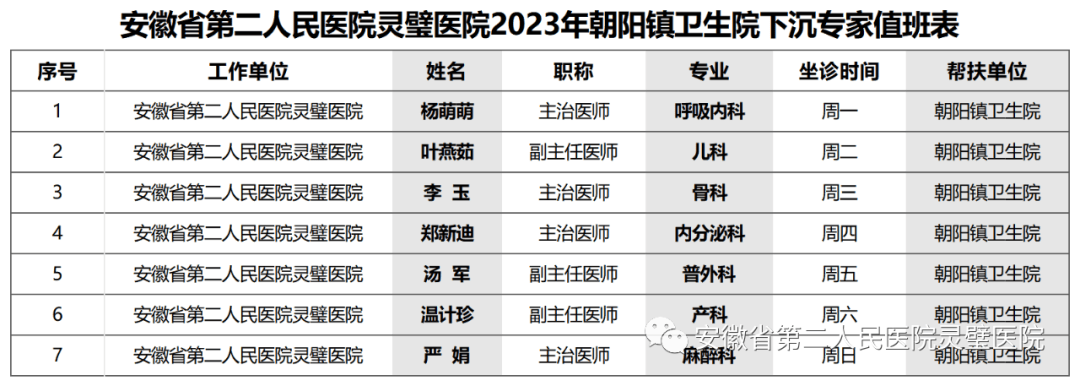 为切实提高基层卫生院对常见病、多发病的预防、诊治、手术以及急诊急救等处置能力,解决基层群众看病就医问题,最大限度方便群众就医,根据朝阳镇、尤集镇、下楼镇卫生院的实际需求,自2023年11月1日起,我院派出帮扶团队长期进驻三家卫生院坐诊。具体安排如下: