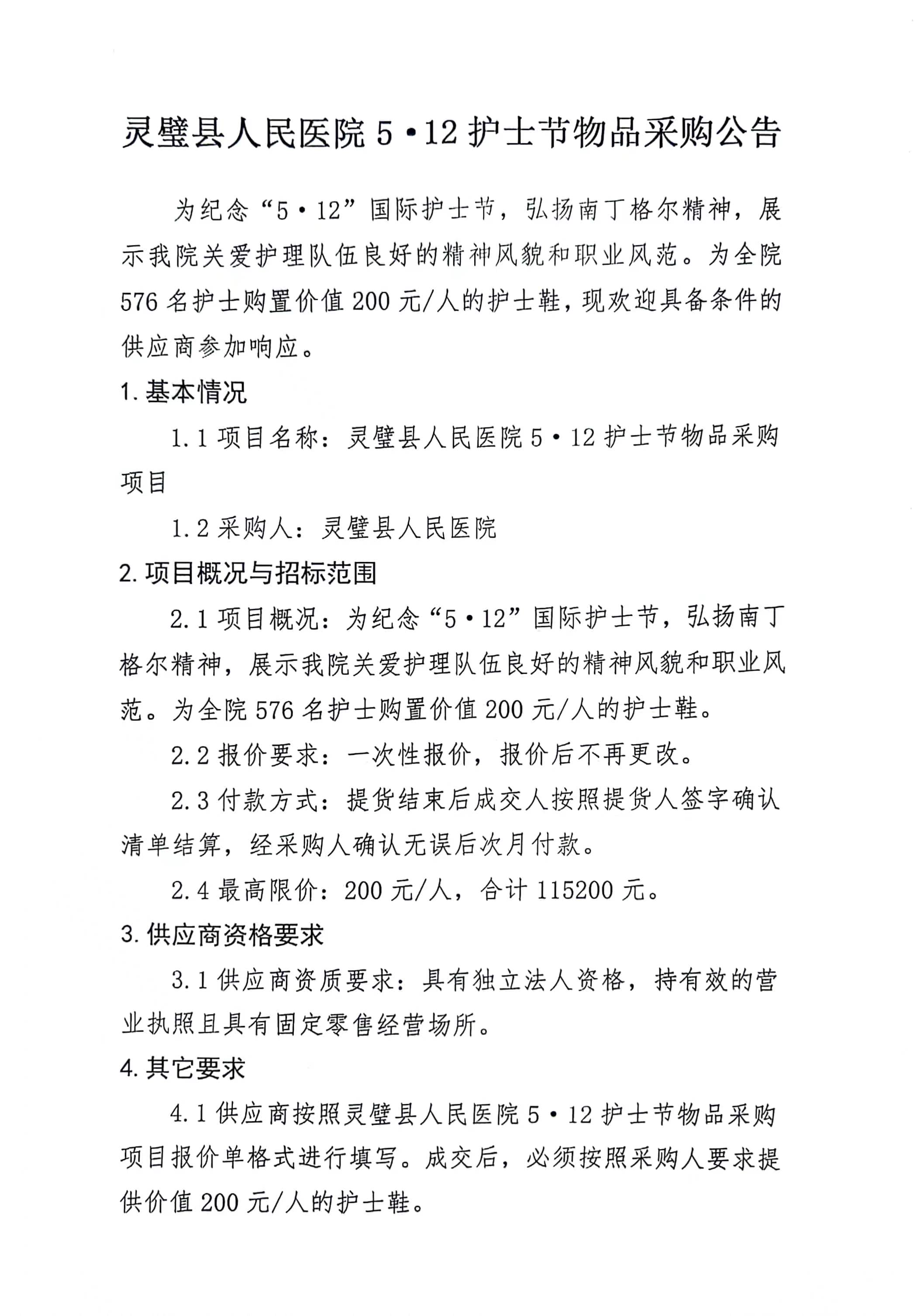 灵璧县人民医院5·12护士节物品采购公告