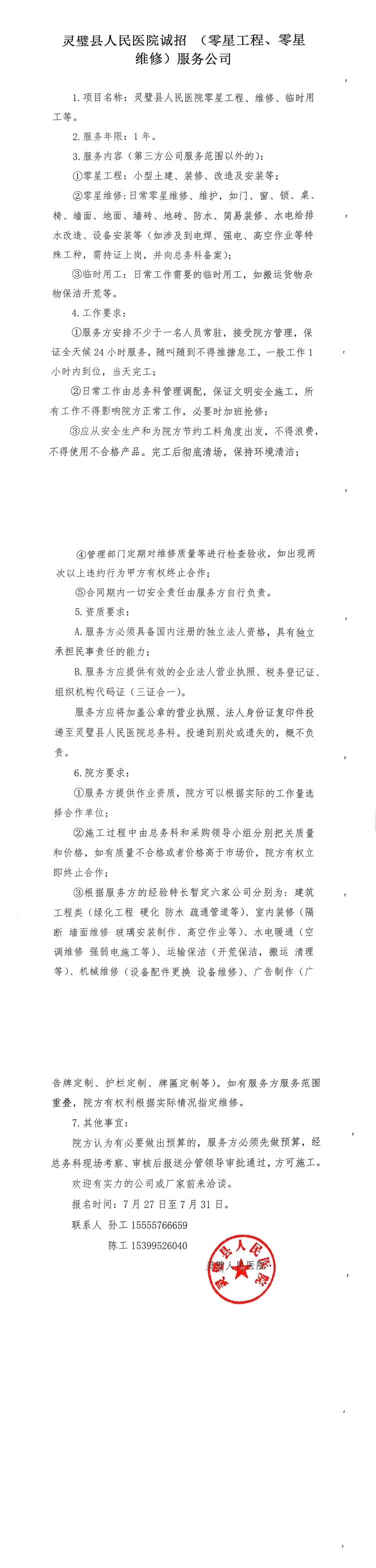 诚招(零星工程、零星维修)服务公司