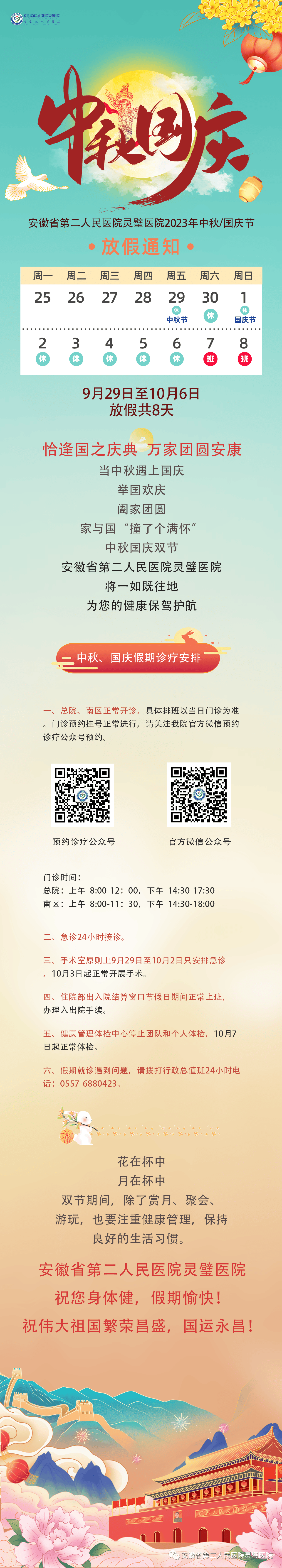 安徽省第二人民医院灵璧医院中秋、国庆假期诊疗安排