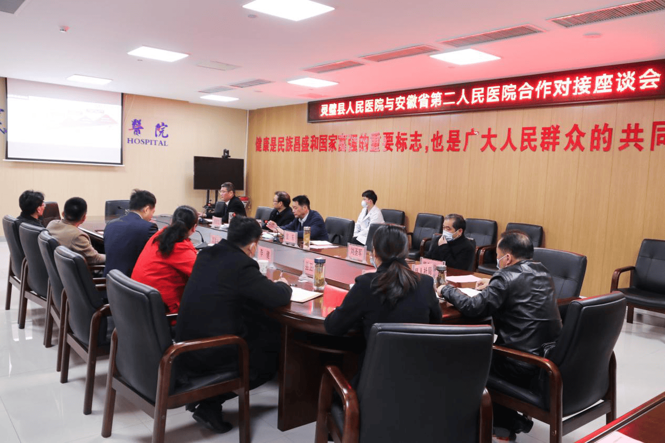 3月24日上午,灵璧县人民医院与安徽省第二人民医院合作对接座谈会召开。县政府副县长张安文主持会议。安徽省第二人民医院党委副书记、院长吴文涌,党委委员、副院长周道平,党委委员、组织人事部主任李健,医务一处主任吕建军,县委副书记、代县长薛勇,县委常委、县政府副县长宣东,县政府办公室主任刘圣军出席会议,县卫健委、县医保局、县财政局、县人社局领导,县人民医院院长王浩参加会议。