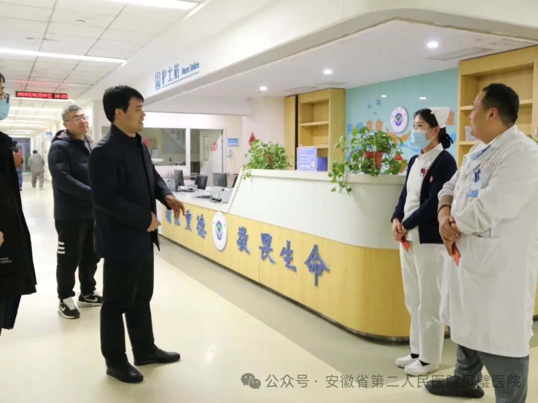 除夕夜,岁寒情暖。安徽省第二人民医院灵璧医院党委书记张浩,纪委书记蒋兴良,副院长胡正宽分别带队深入全院各科室进行节日慰问,向值班值守的医务人员送上亲切问候和新春的祝福,让在岗位上守岁迎新的医务人员倍感温暖。“晚饭吃了吗?”,“大家辛苦了”,“给大家拜年了,祝大家新年快乐!” 每到一处,院领导都送上关心关怀和满满的祝福,详细了解住院病人和科室工作情况,感谢大家舍小家为大家,坚守在一线。院领导叮嘱大家,春节期间要继续保持医者本心,为每一位患者提供温情、细致、耐心的医疗服务。也要在做好患者救治工作的同时,保重身体,注意劳逸结合,为广大群众的生命健康提供更加坚实的医疗保障。 声声祝福语,浓浓关怀意。值班值守的医务人员也纷纷向院领导互赠祝福,同时表示,请领导放心,一定坚守岗位,立足本职,全力保障春节期间服务质量和医疗安全,确保度过一个平安祥和的春节。