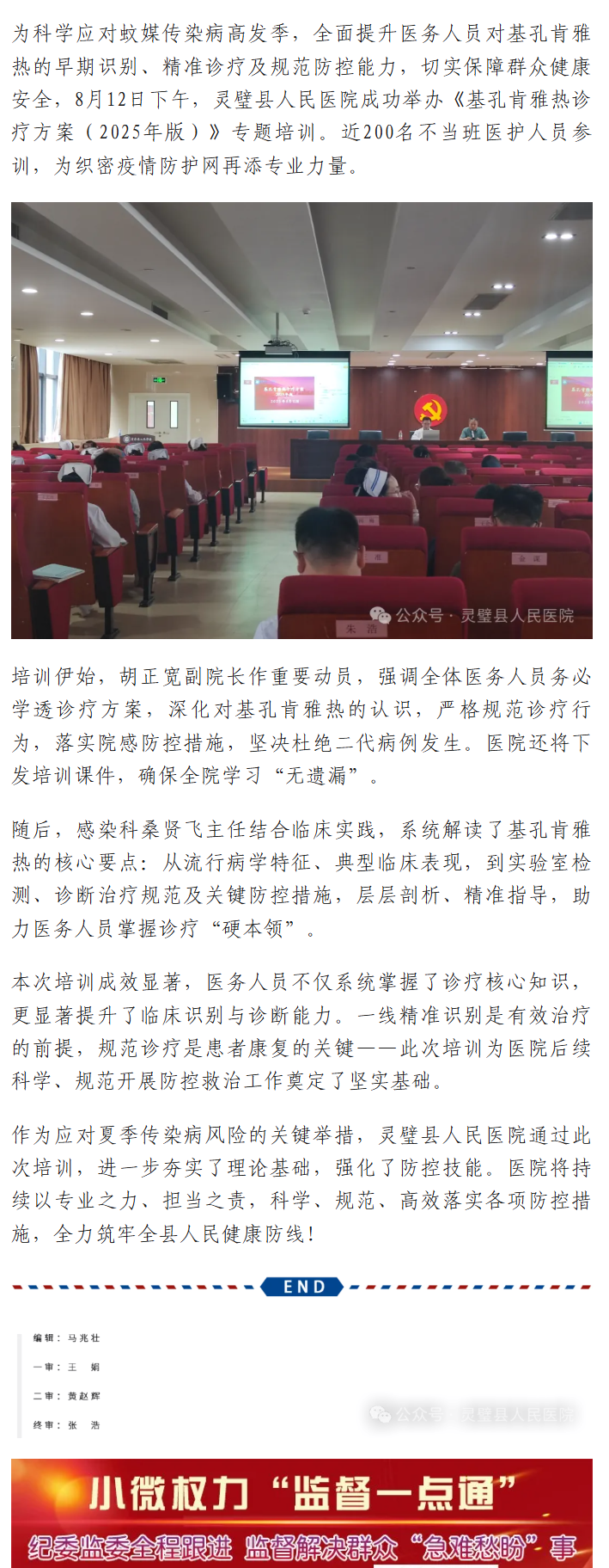 筑牢夏季传染病防控屏障!灵璧县人民医院开展基孔肯雅热诊疗规范专题培训