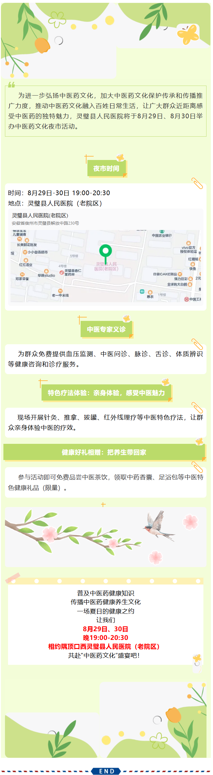 【活动预告】8月29日、30日,灵璧县人民医院中医药文化夜市等您来!