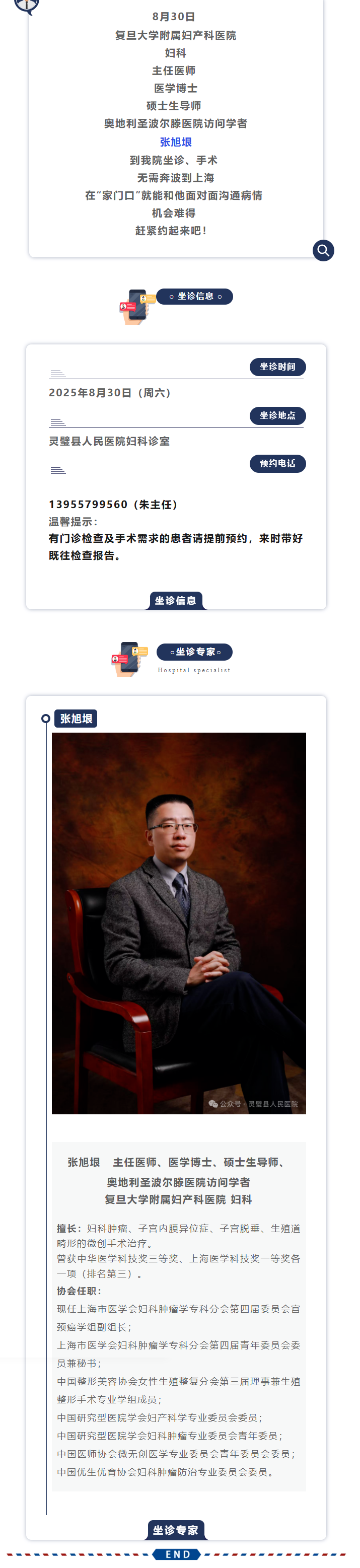 群众不动专家动!8月30日复旦大学附属妇产科医院专家张旭垠来我院坐诊、手术