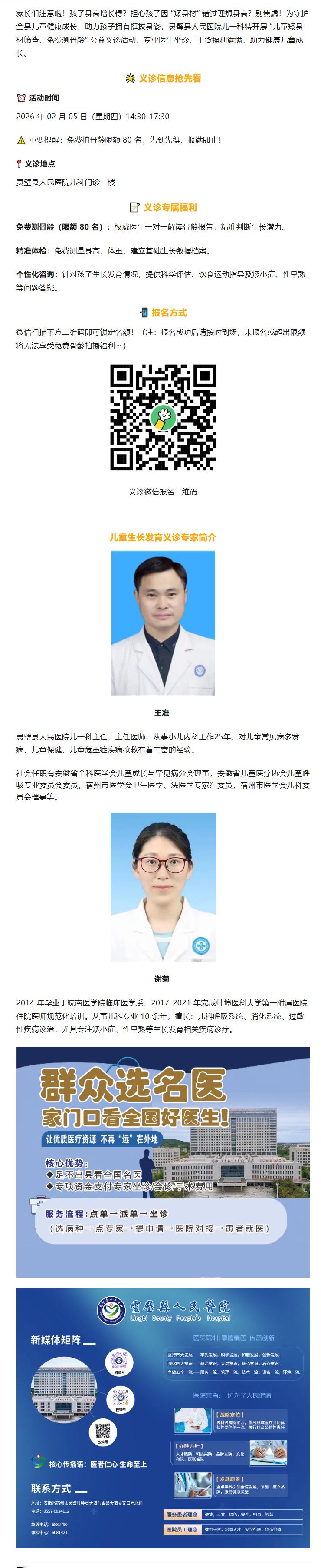 孩子长得慢、身高不理想?2月5日,灵璧县人民医院开展“儿童矮身材筛查、免费测骨龄”义诊活动,助力孩子科学长高!